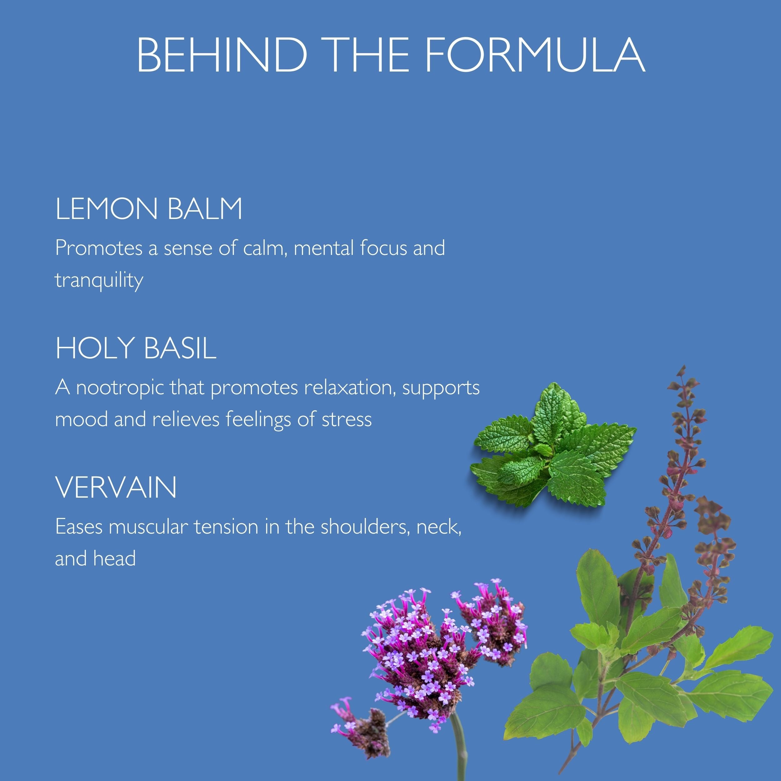 This herbalist-formulated blend is made with herbs that help to encourage steady calm throughout the day. Lemon Balm, Vervain, Motherwort, and Skullcap help you feel more relaxed and focused.